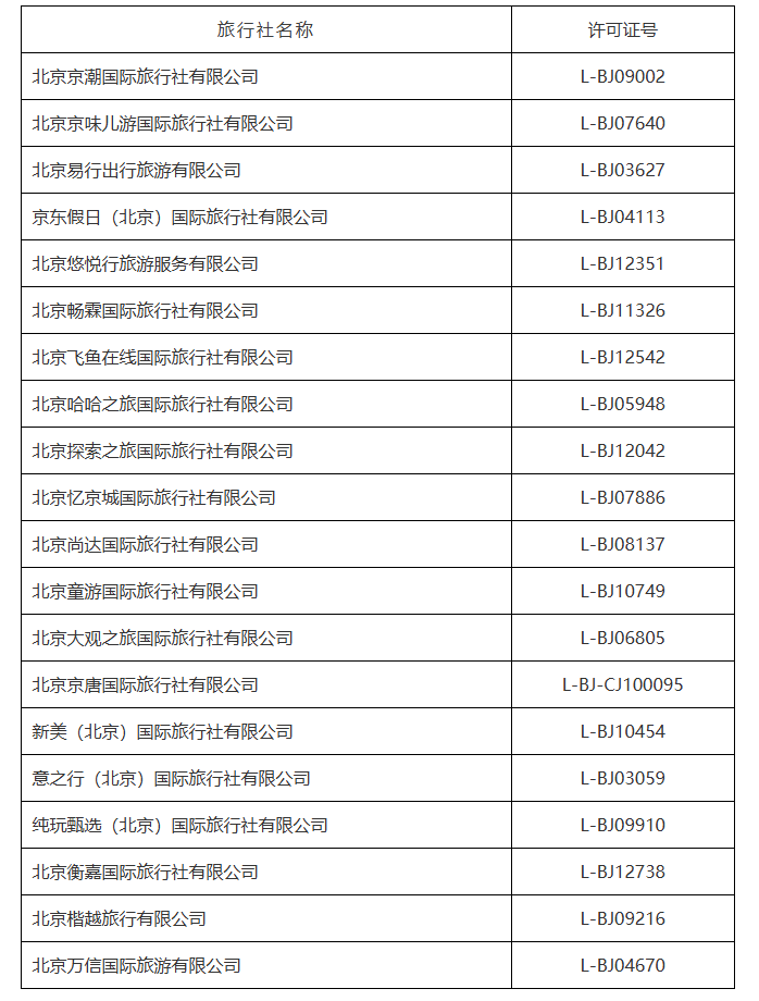 根据北京市旅行社涉诉情况统计,现公示2026年3月16日至3月22日,北京市投诉量排名前十旅行社名单如下: