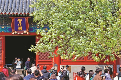 春风送暖,北京东城区智化寺内,两株百年梨树迎来盛花期。满树雪白繁花缀满枝头,如云似雪,与红墙灰瓦相映成趣,勾勒出京城春日极具韵味的胜景。