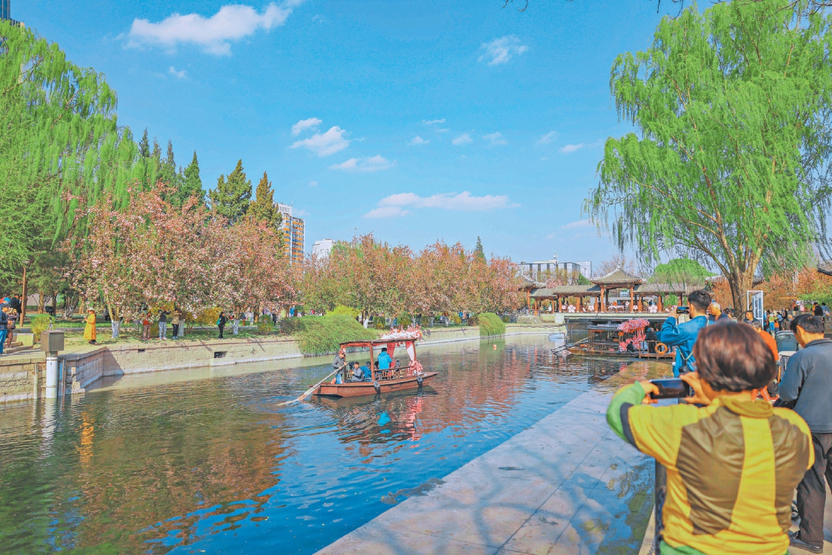 “开船喽……”昨天(1日)下午,元大都城垣遗址公园东土城沟码头处,随着一声响亮的吆喝,船夫解开摇橹船的绳索,船儿缓缓出发,在粼粼波光中轻轻摇曳,与岸边海棠相互映衬。记者从市水务局了解到,东土城沟国风摇橹船昨日试运行,今起正式运行,运营时间约半个月。不同于在滨水步道赏“海棠花溪”美景,市民游客坐于船中,可以在河道中更近距离感受“花溪入画”的独特魅力。