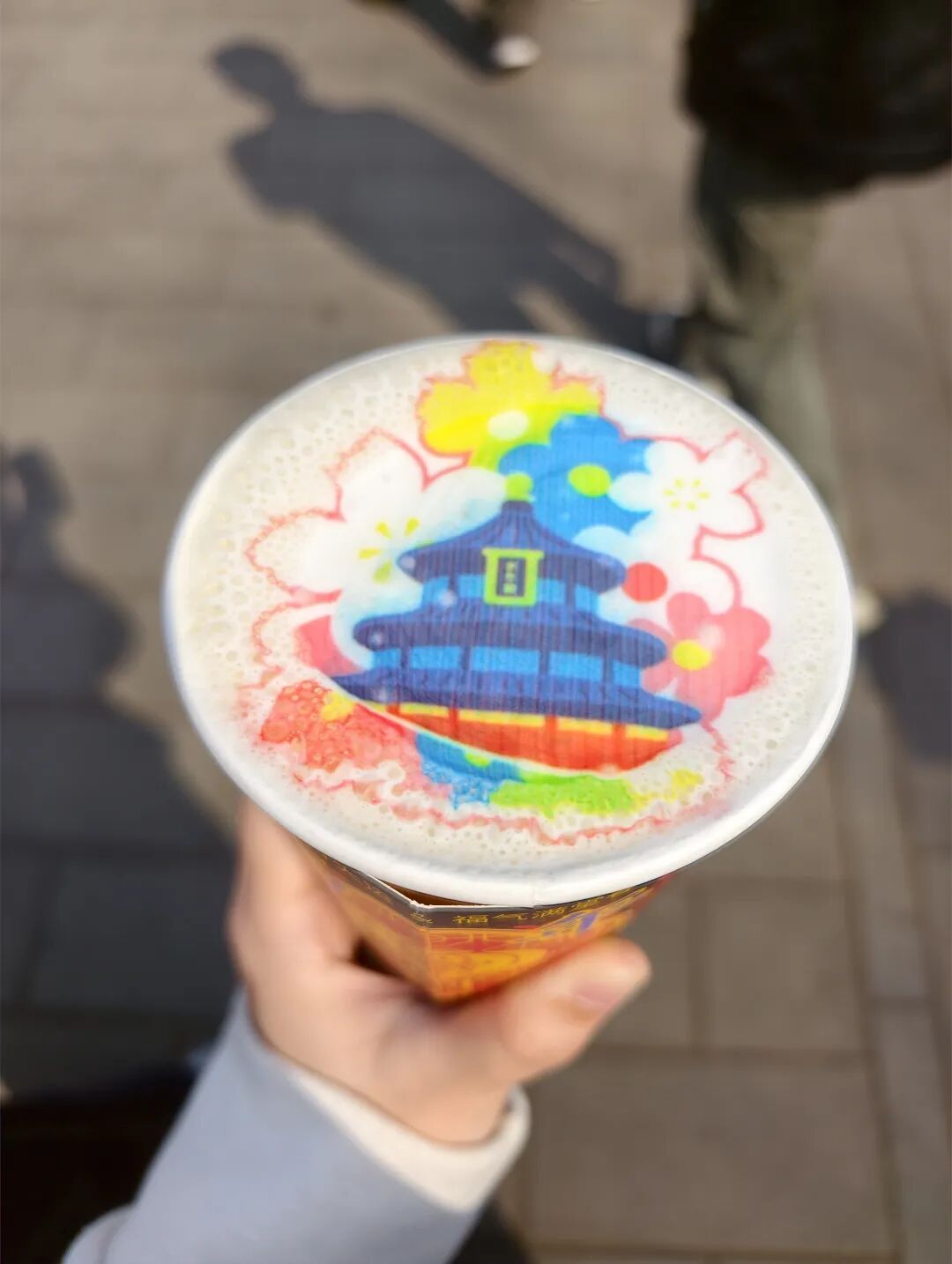 天坛公园的“天坛福饮”饮品店前,排队的游客络绎不绝,印有祈年殿春日景色的拉花咖啡,成为春日必打卡的网红单品,黄皮芭乐茉莉福茶、双柚抹茶茉莉气泡饮等春日限定饮品清爽解腻,石狮子形状的“福气雪糕”颜值与口感兼具,巧克力、草莓、茉莉花茶三种口味满足不同游客的喜好,成为游客们的拍照“神器”。