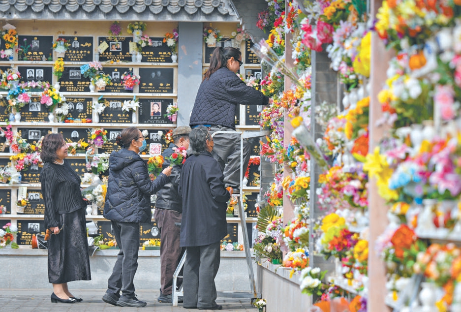 八宝山革命公墓内处处鲜花锦簇,祭奠亲人和先烈的人们络绎不绝。