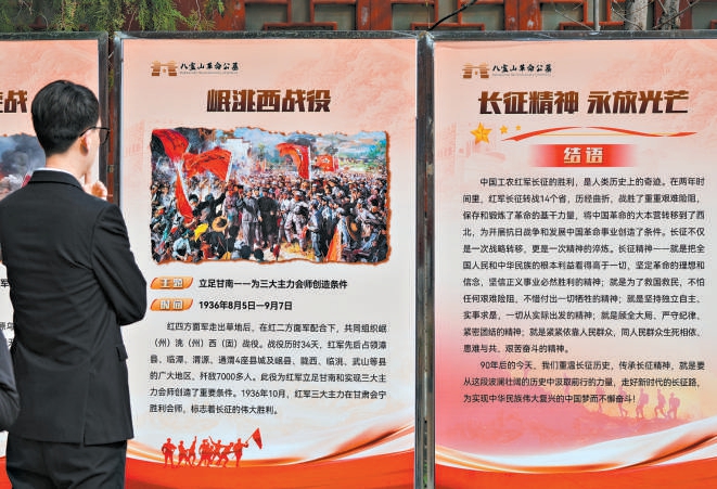 在八宝山革命公墓,长眠着许多参加过长征的革命先烈。为纪念红军长征胜利90周年,清明期间,八宝山革命公墓还精心布置了图文展。据了解,展览以长征中18个重要战役战斗为主线,带领人们重温这段波澜壮阔的征程。