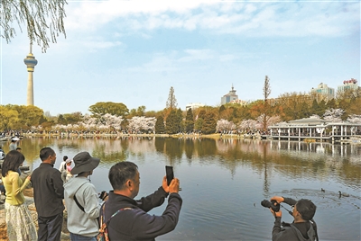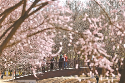 3月至5月,山桃、榆叶梅、海棠、樱花、郁金香、油菜花等30余种春花,将随物候变化次第绽放、花期接续,形成层次丰富的春日景观。摄影/本报记者 杨益