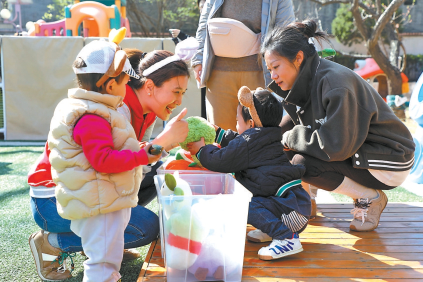 在音乐游戏中熟悉园所环境,手持小瓶捡拾树下散落的花瓣,在闯关游戏中完成钻、爬、跑、平衡等挑战,在运动中释放活力……4月1日,孩子们在北京市第五幼儿园里体验了一场丰富多彩的亲子活动。今年新学期,北京市教委组织全市普惠性幼儿园,在学期内每周面向周边社区0—3岁婴幼儿及家长开展一次公益托育亲子活动。如今,这项举措迎来 “满月”。北京青年报记者了解到,春季学期,全市2000余所普惠性幼儿园计划开展托育亲子活动3.5万余场。3月,全市共开展亲子活动8523场,累计参与幼儿83630人次、家长110349人次。