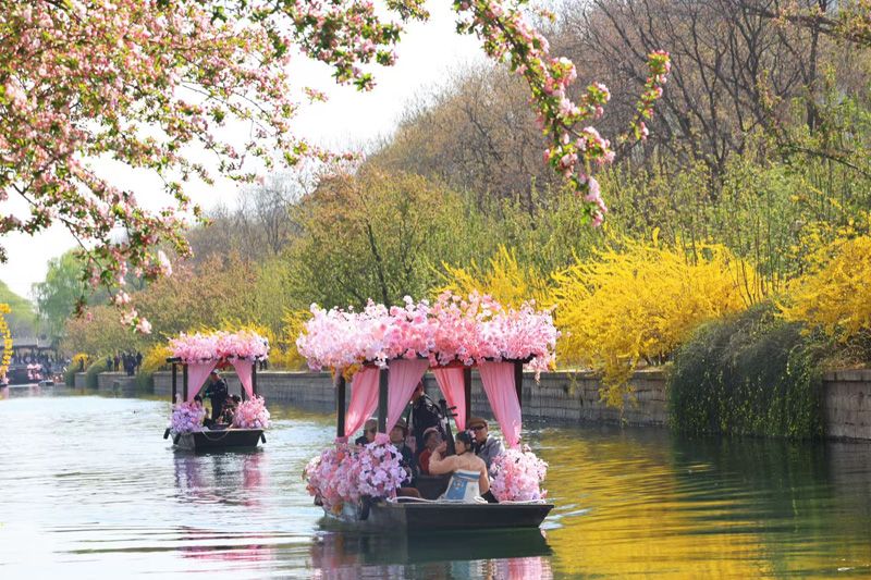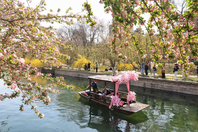 来源标题:春满京城 | 元大都摇橹船开船,海棠花溪赏花正当时