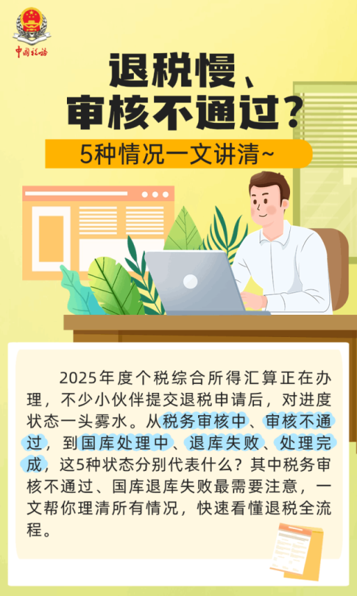 来源标题:个税综合所得汇算退税慢、审核不通过?5种情况一文讲清