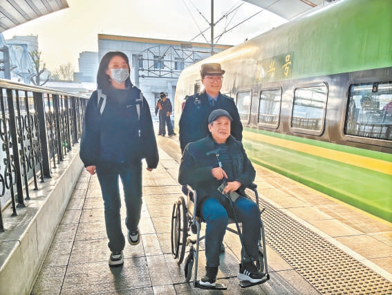 缘分就这样结下了。三个多月来,崔圣阳记住了这位“老熟人”,默默守护每一趟行程。每次送他上车,崔圣阳都会反复叮嘱列车员:“这位先生刚做完手术,身体虚弱,下车时麻烦多提醒、多照顾。”