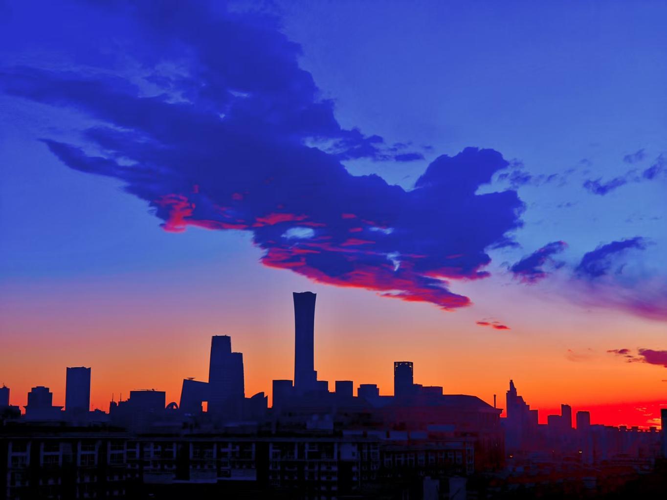 来源标题:北京朝霞如火,金光万道开启新一周