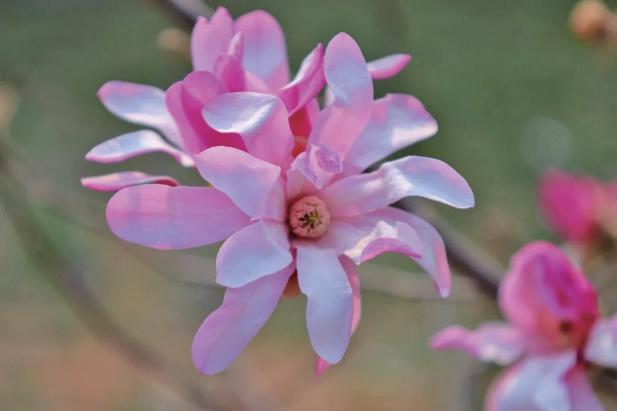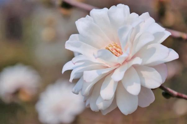 星花玉兰的花被片不是常见的“大勺子”状,而是狭长的条形。大多数玉兰品种的花被片为9-12枚,而“星花”的花被片数量多达20-40枚,盛开时像一朵朵菊花缀满枝头,非常独特。“裙舞”星花玉兰和“百年”星花玉兰都是这个家族的成员。值得一提的是,星花玉兰属于灌木,植株不算高大,很适合近距离观赏拍照。