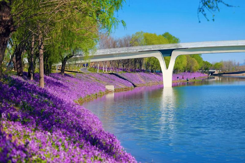 来源标题:春满京城 | 坝河滨水空间二月兰盛开