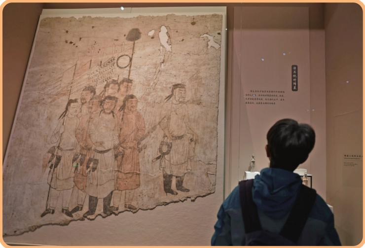 陕西潼关税村墓出土的隋代人物图壁画。