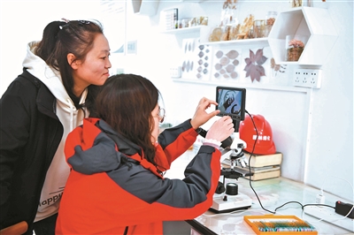 技术人员用显微镜观测花芽切片