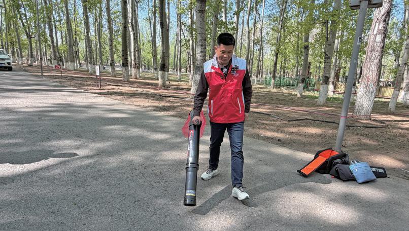 由绿友集团研发的轻便手提式杨柳飞絮吸收机也已全面投入使用。“普通吸尘器抽吸过程中易吹散飞絮,难以有效收集。这款设备实现了飞絮精准定向吸取,不会带走其他杂物。”据工作人员介绍,该设备整机长约1米、重1.4公斤,轻便易操作,可高效清理居民区、道路边角等人工清扫难度大的区域的落地飞絮,同步消除飞絮堆积引发的火灾隐患。“今年我们特意对机器进行了改进,加了一个过滤网,防止吸入头发等堵塞风机。”