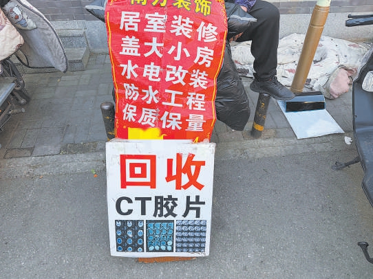 在西城区一个菜市场旁,一块“回收CT胶片”的招牌吸引着来往居民的注意。“CT片里含银,能变废为宝。”摊主说,“因为前几个月银价上涨,CT片的回收价格也跟着水涨船高,从5毛钱涨到1块5。”
