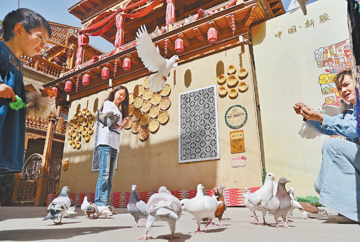 团城鸽子亭下的小广场上,游人与鸽子互动,让这片改造后的老城区保留了一份传统的味道。