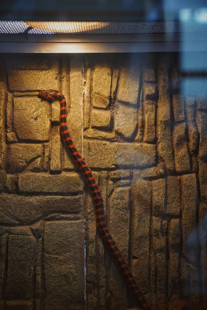 北京动物园两栖爬行动物馆中的赤链蛇。新京报记者 薛珺 摄