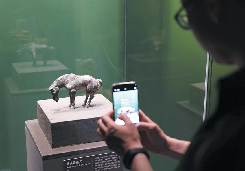 4月18日,中国美术馆,观众观看低头青铜马。