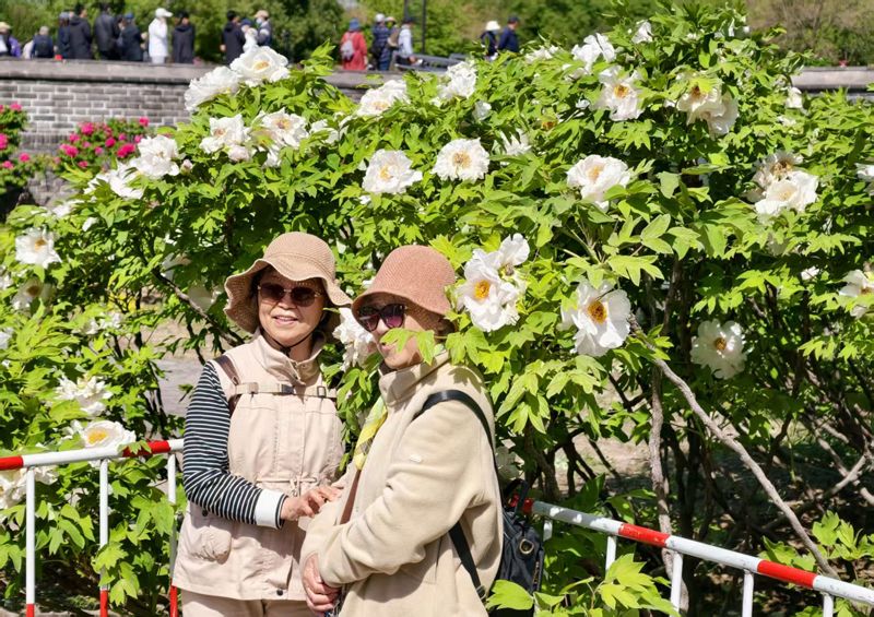 “凤丹白”盛放,前来驻足留影的游客络绎不绝。