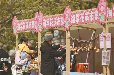北京滨水赏花的另一大“顶流”是元大都城垣遗址公园的海棠花溪节。今年的海棠花溪节突破传统赏花模式,深度融合元大都历史底蕴,依托园内4.8公里海棠景观带、56个品种万余株海棠,为市民游客打造一场穿越七百年的沉浸式春日文化盛宴。经过一年的景观提升改造,今年元大都公园在原有5000余株海棠的基础上,新植5000余株各类品种海棠,总量破万,成为华北地区海棠栽植数量最多的城市公园。海棠品种也从28种扩增至56种,花期则延长至4月中下旬。此外,京承高速西侧还打造了新优海棠专类花园,汇聚“金雨点”“薄荷糖”“皇家美人”等特色名品,与原有海棠花溪景区遥相呼应。“每年春天我们都会来看海棠花溪,今年不仅花更多了,还新添了樱花桥和时光隧道,一路逛来都有惊喜。”带着家人一同来赏花的王爱兰阿姨说。