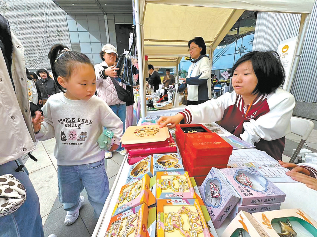 小朋友在大兴区举办的全民阅读系列活动上挑选文化周边