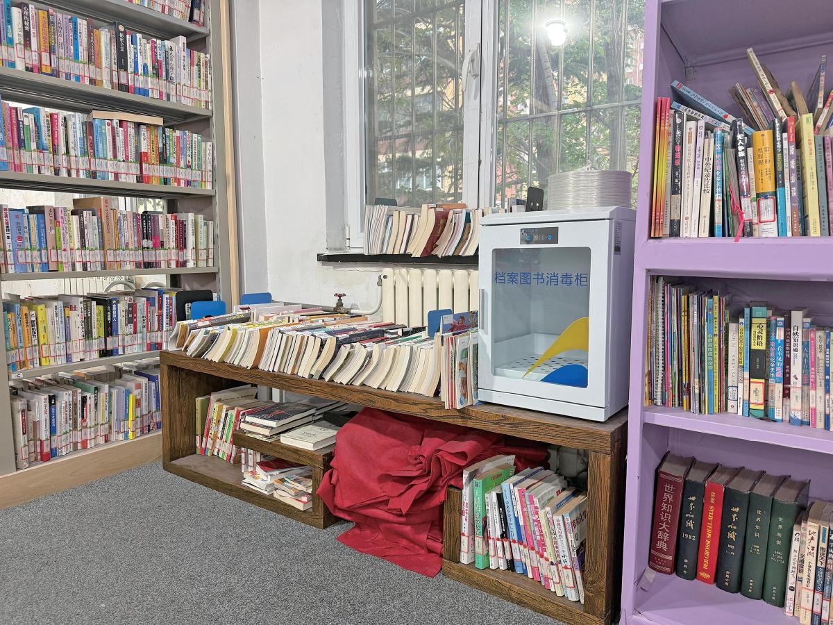 潘家园街道图书馆内放置的档案图书消毒柜。新京报记者 张建林 摄