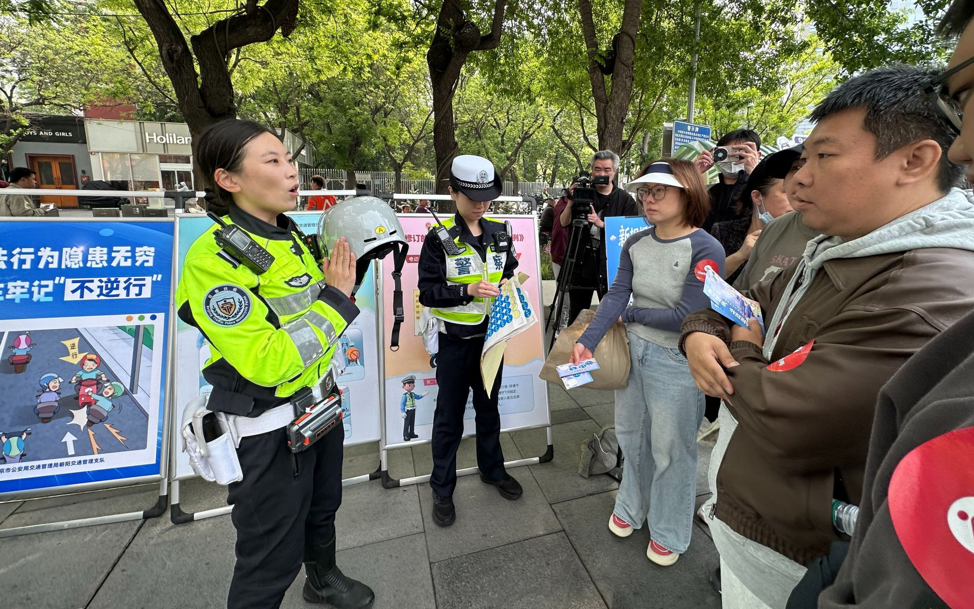 见围拢上来的市民越来越多,窦雨洋进一步结合《北京市非机动车管理条例》的新变化进行讲解。“新规中除了要求咱们骑乘电动自行车都要佩戴头盔,同时对于骑车带人的年龄上限也调整了,从12岁上调到16岁,方便家长们接送孩子。但一定要给孩子戴好头盔,同时要给孩子准备适合他们头围大小的头盔,否则达不到应有的防护效果。”