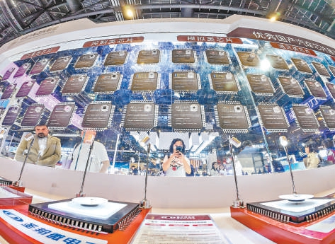 国产汽车芯片集中展示。北京日报记者 武亦彬摄