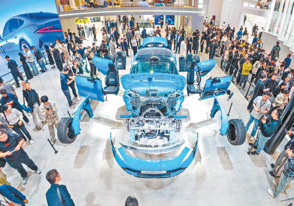 小米汽车展台吸引众多参观者驻足。北京日报记者 潘之望摄