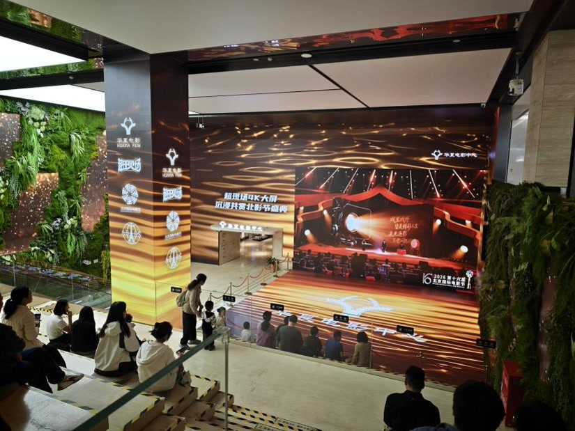 4月19日是北影节开幕日,天公并不作美,京城普降大雨,位于室内的华夏电影中心、隆福寺等“超现场”点位前,不少观众驻足停步,透过大屏收看开幕式精彩现场。除直播外,整个电影节期间,全市多个商圈的离线大屏都在不定期展映本届北影节开幕式的精彩盛况,让电影的光彩在春日京城的街头巷尾久久回荡。
