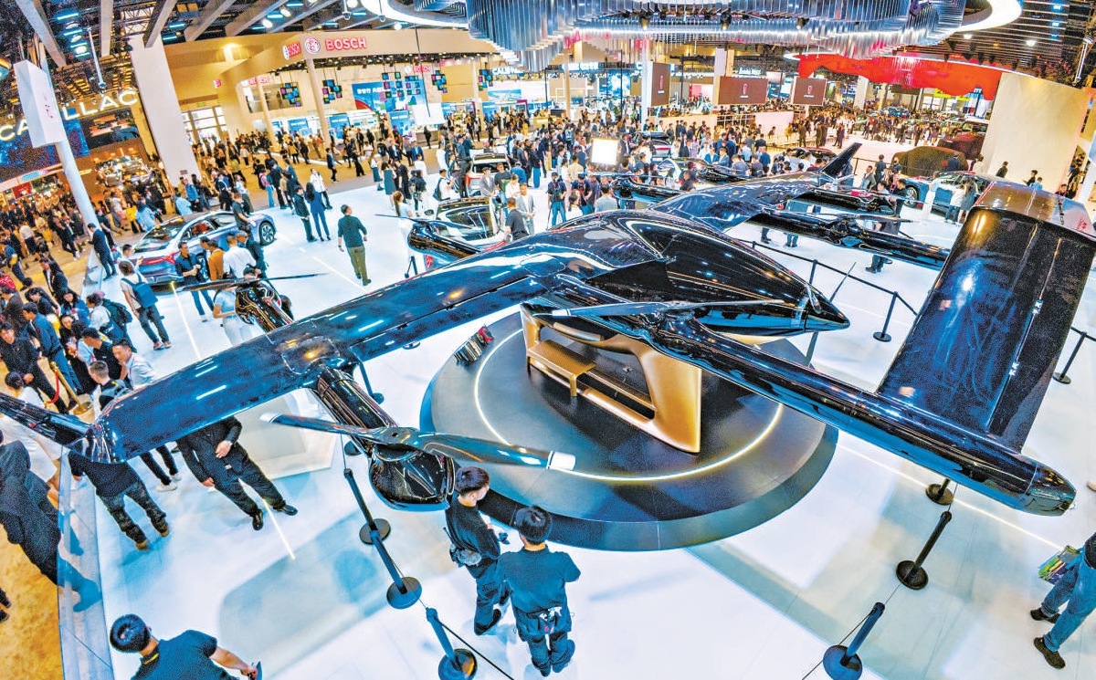 红旗汽车展台亮相的飞行汽车“天辇1号”十分抢眼。本报记者 潘之望摄