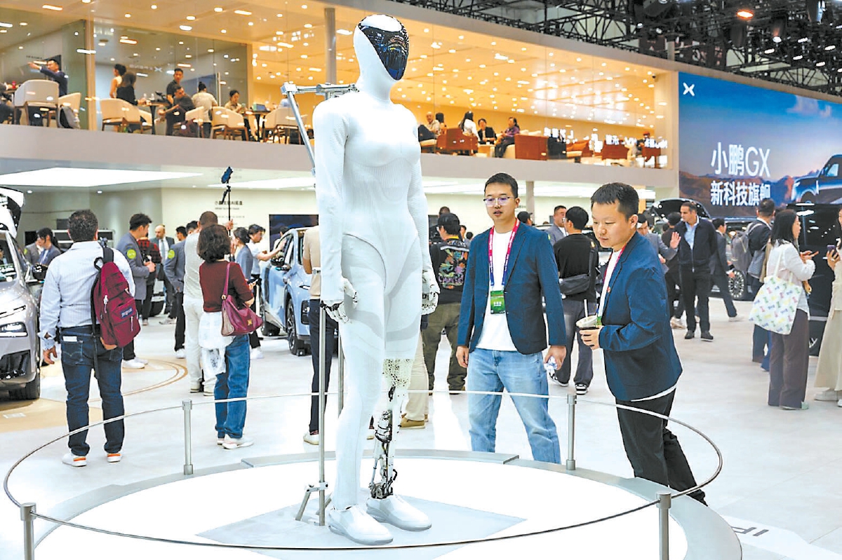 会场展出的人形机器人是小鹏自研物理AI体系的具象落地,与AI汽车、飞行汽车共同展现物理AI改变未来的科技实力