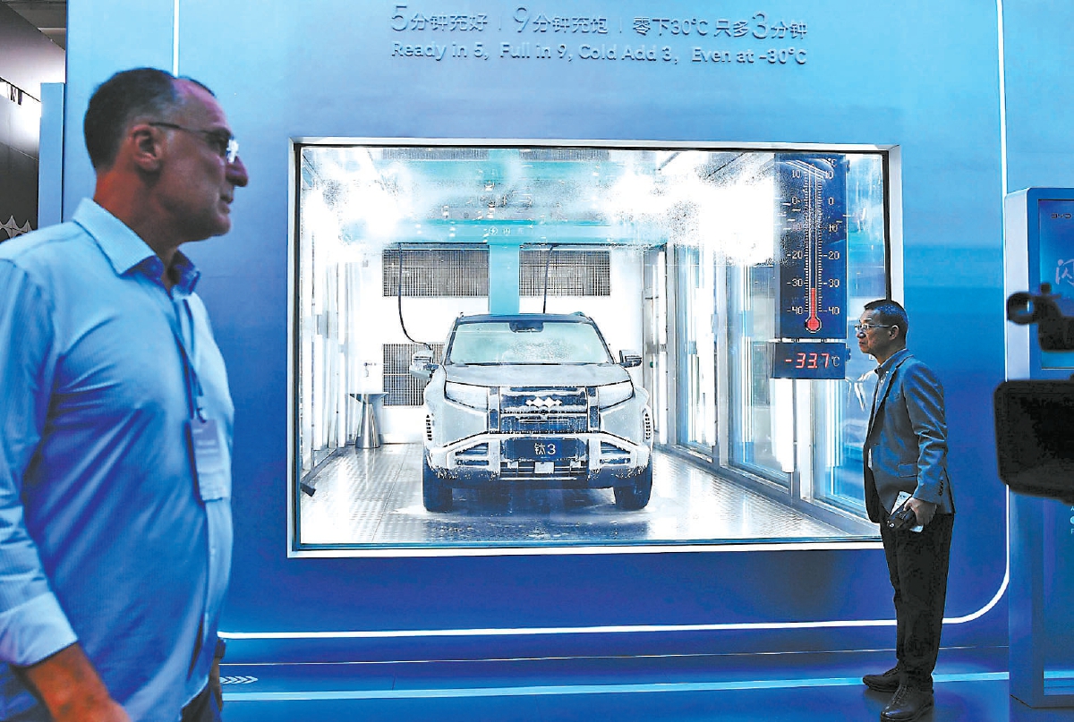 参展车企的核心展品与技术突破成为车展现场重要看点。在比亚迪闪充展台,零下30摄氏度的低温舱引人驻足,即便隔着玻璃伸手触摸,依然能感到寒意,舱内的新能源汽车对低温“毫不畏惧”,电量从20%充到97%仅用12分钟。