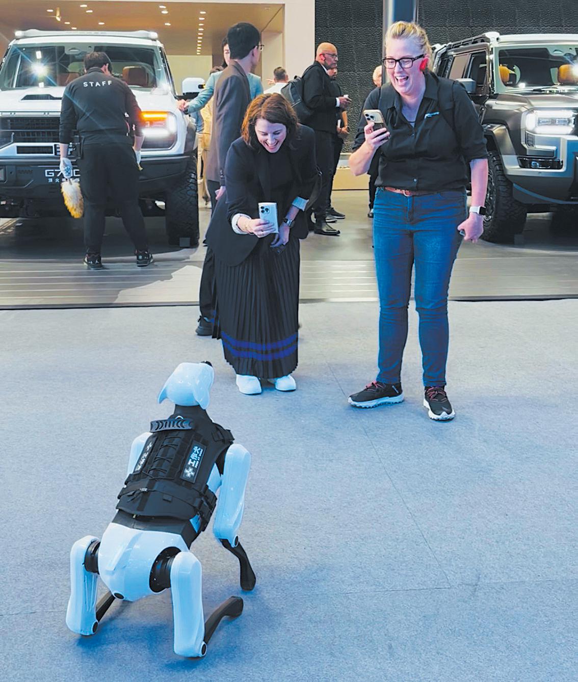 同样吸引眼球的,还有机器狗和机器人。尽管它们如今已经成为各大展会的常驻嘉宾,但对于外国人来说依旧新奇。北京车展的机器狗就引来许多外国人打卡拍照,一名外国女士弯下腰跟机器狗发出命令说,“Sit(坐)。”机器狗听话地坐下,她的伙伴在旁边给她和机器狗拍视频。