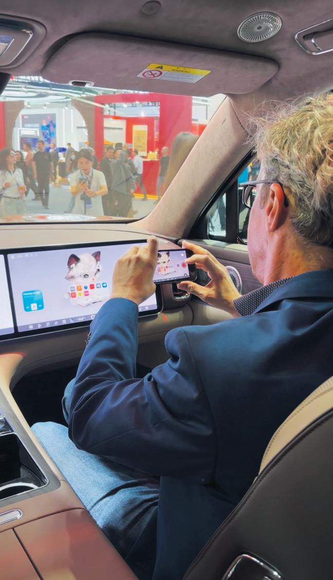“早上遇到几个日本人,在拿着尺子来量我们车的雨刮器尺寸、窗户玻璃尺寸。”一位来车展给国内品牌做技术支持的研发工程师向记者感慨,十几年前刚入行时,他去海外车展也会研究国外怎么造车。现在反过来了,“轮到他们来学习我们了。很多外国车企会买我们的车回去扫描拆解,有时候等不及就会在车展现场量尺寸。”