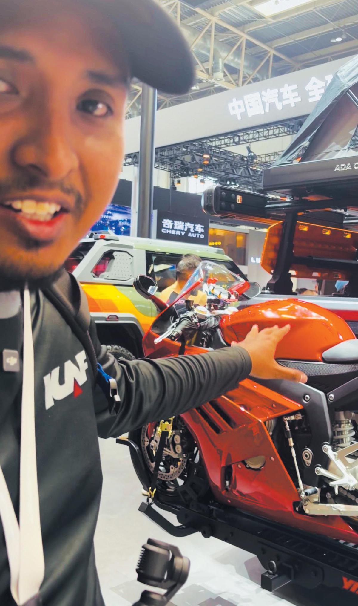 外国人感兴趣的,还有张雪机车。此次车展上,捷途展台为了吸引人气和支持国产品牌,自费购买了一台张雪机车820RR配合越野车展出,许多外国人围着它反复欣赏。“这是我第一次亲眼看到张雪机车,特别高兴。”一位马来西亚观众很兴奋,他是张雪机车的粉丝,“看到中国摩托车击败那些老牌传统品牌,真的很让人难忘。”