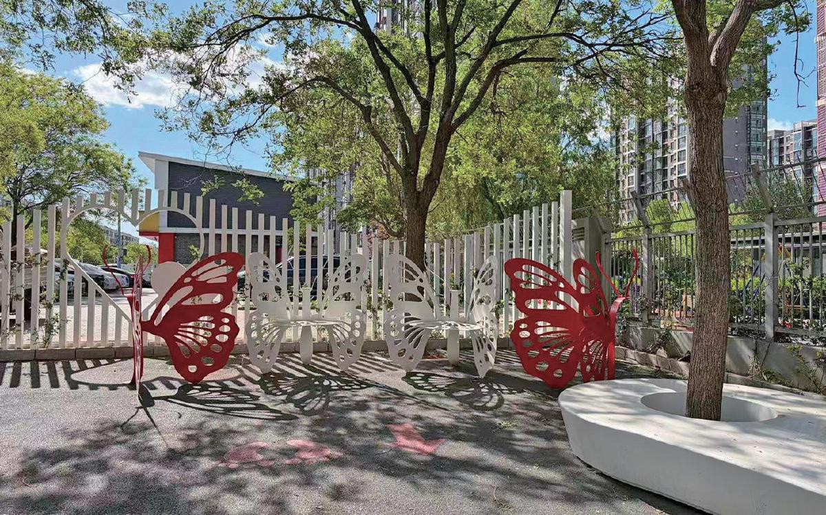 景观小品区域的蝴蝶座椅。 光明街道供图