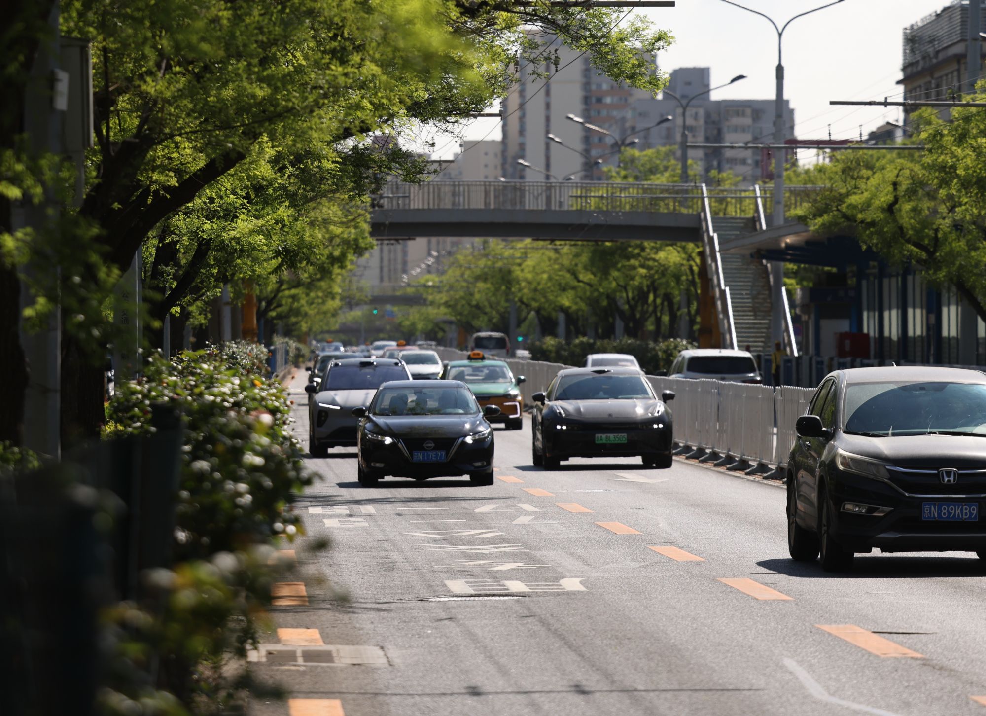 目前相关道路公交专用道标志、标线和非现场执法设备均已调整完毕,社会车辆可放心通行。新京报记者 王贵彬 摄