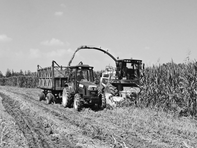 6月26日,在房山区窦店村的麦田里,小麦联合收割机吐出的秸秆被后面的打捆机打成了方捆,捡拾堆垛机紧随其后,将一捆捆麦捆捡起来堆到地头,再由运输车拉到村里的养殖场。养殖场再将这些秸秆与干草、青贮、精料等粉碎混合,制成了牛饲料,实现了秸秆向饲料的转化。养殖场产生的牛粪再被施到地里,实现了种养循环利用。