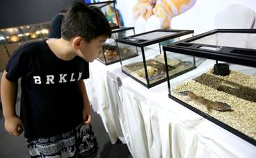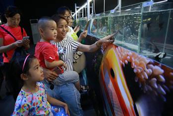 市民们在2017年鱼乐嘉年华奇幻鱼乐谷观赏热带鱼 陈晓根/摄