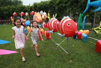 小朋友在2017年鱼乐嘉年华海洋彩灯区玩耍 陈晓根/摄