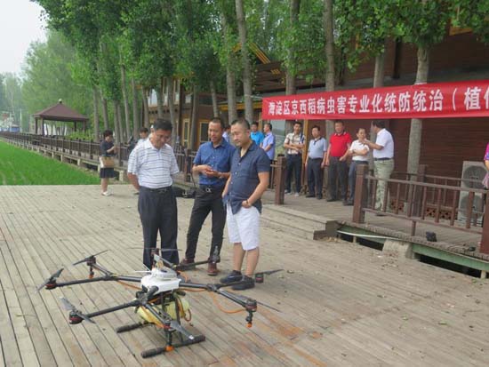 千龙网讯 日前,记者从北京市农业局植物保护站了解到,夏至过后,正是水稻插秧后的关键防治期。今年,为保持京西稻生态化种植,减少农药利用率,市农业局植保站的帮助与指导下,海淀区农业执法大队从村民们最关心的病虫害防治入手,通过政府购买服务形式,依托北京比奥瑞生物科技有限公司,对1460亩京西稻田进行统一绿色防控。