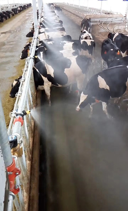 效益提升是根本。每年一到“三伏天”,奶牛采食量和产奶量都会显著下降,这直接影响了奶农们的收益,让奶农们都头疼不已。自从安装了智能喷淋降温系统后,相比以前,奶牛进食量提升了30%,繁殖率提高约32%,产奶量提高(少损失)30%以上,1000头牛的牧场,每天能多挤出1吨鲜奶,每月提升经济效益近10万元。自从用了这个喷淋系统,奶农们也好像“桑拿天”冲了一场淋浴,心里舒畅了不少。