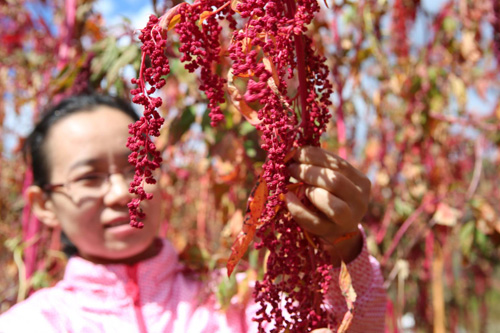 北京市农业技术推广站高级农艺师梅丽介绍,明年将以“红藜”为主栽品种,加大在延庆四海、刘斌堡等低收入村的示范推广力度,带动困难农户增收致富。同时,自主选育适合北京地区种植的耐高温高湿、抗倒伏新品种,进行搭配种植。积极探索“政府+企业+农户”一条龙服务方式,为企业和农户搭建生产销售平台,解决农户种植藜麦的后顾之忧;并积极与科研单位合作,丰富“红藜”研发产品,为市民提供优质保健食品。