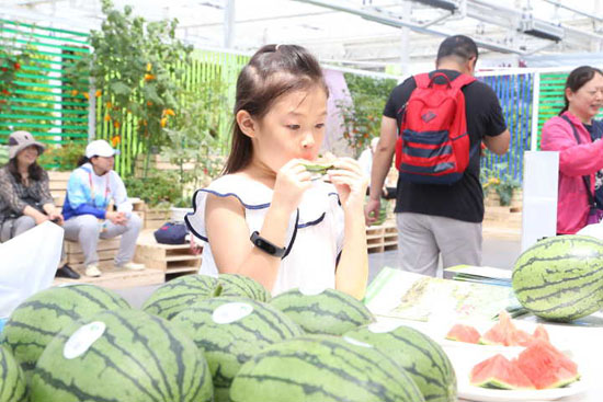 千龙网讯 2019年6月7日,在世园会百蔬园里,欢声笑语,快乐不断。这里正在举办一场以西甜瓜为主题的科普宣传活动。大型及盆栽西瓜展、西甜瓜品鉴、特色演出等一系列活动,让游客在可看、可赏、可吃的活动中体会北京西甜瓜的韵味。最受关注的就是西甜瓜品鉴和竞猜活动。因为正值端午节期间,很多市民参加了此次活动,现场技术人员为他们讲解了西甜瓜的品种类型、如何种瓜和怎样挑瓜等科普知识,让市民对北京市的西甜瓜产业有了更深的了解。