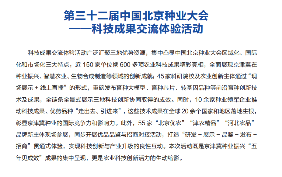 深化区域协同聚力种业振兴第三十二届中国北京种业大会9月11日-14日举办