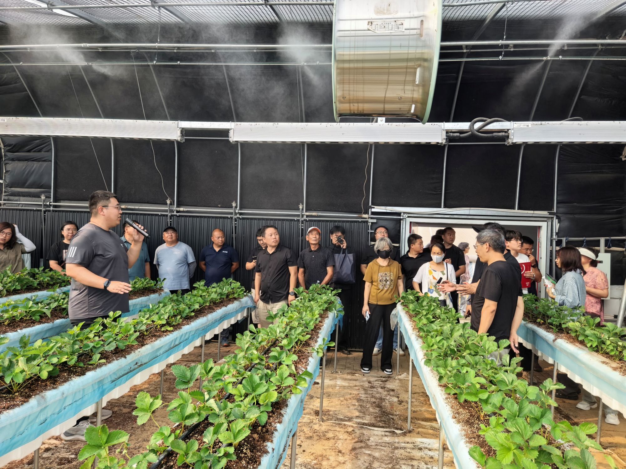 为提升农民收益,鑫逸农场与辛庄基地展示了草莓延长供应及高品质栽培集成技术,示范种植了包括粉玉、宝珠、梦之莹、黑珍珠等在内的多色系、多熟性优良品种,通过早、中、晚熟搭配实现分批采收上市。同时,依托施肥机精准水肥管理,配合湿帘风机、高压微雾等环境调控技术,显著改善草莓栽培条件,为草莓“抢早延后”供应创造有利环境,延长了市场供应期。