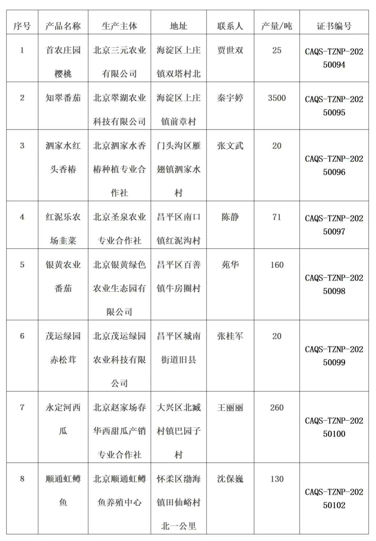8家特质农品生产企业相关信息