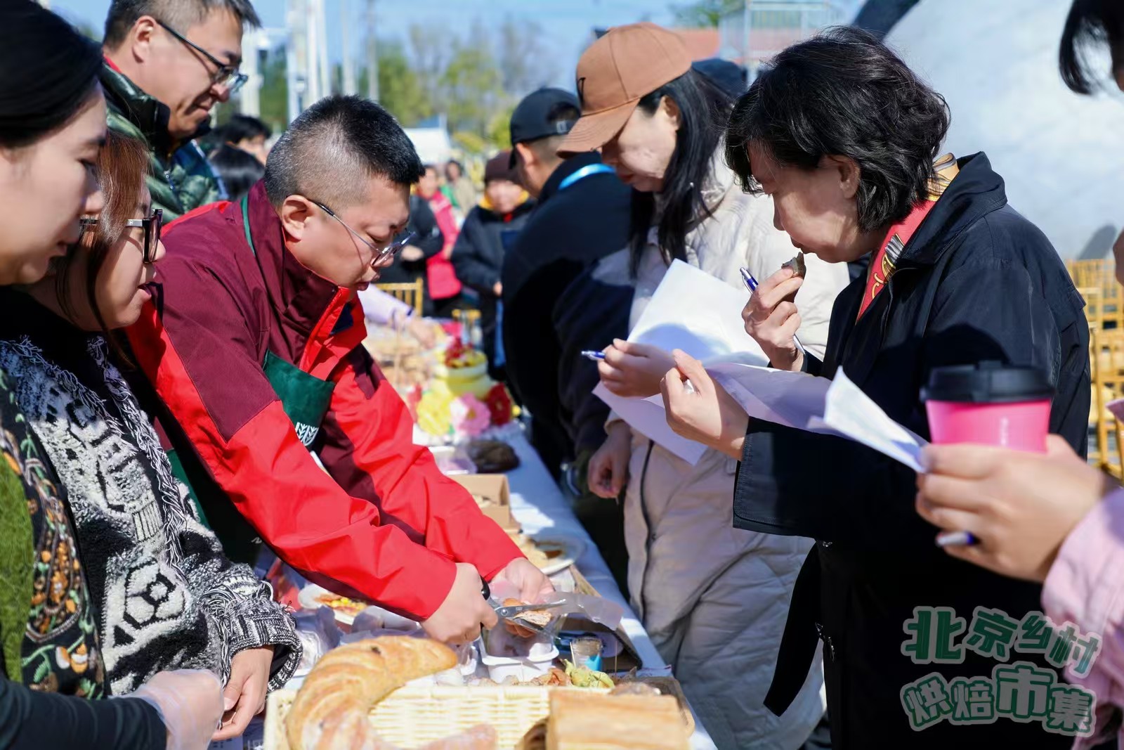 开集当天,在现场游客热烈的期盼下,直径80公分特制巨型面包——“乡村振兴大面包”隆重出炉。刹那间,麦香四溢,掌声雷动。这极具仪式感的一幕标志着北京乡村烘焙市集正式开集。这个饱含乡土气息的面包,以“窑炉慢烤、麦香开花”为特色,瞬间成了全场的焦点,吸引着众多游人驻足拍照,成功将烘焙文化与乡村生活场景连接了起来。
