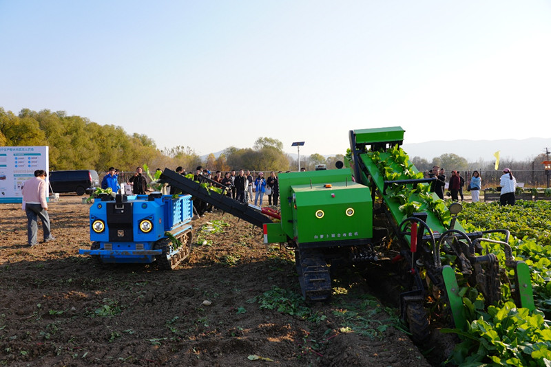 现场集中演示了新能源农机无人化耕整地、气吸式无人化精量播种,白萝卜、胡萝卜、大白菜双机协同智能收获,以及大白菜无人化收获等多项蔬菜生产新技术新装备。