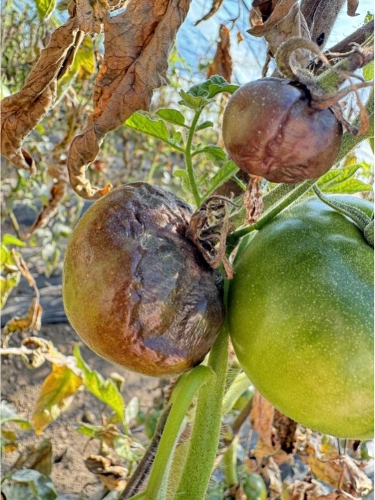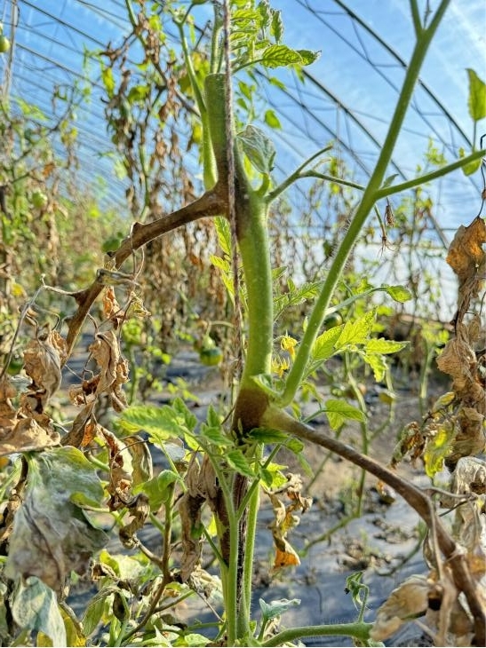 番茄晚疫病可危害叶、茎、花和果实,一般减产20%-30%,严重时整棚绝收,对越冬茬番茄可造成致命打击。